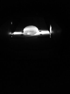 Adjust height of fluorimeter so that the camera will take a picture of the slide edge-on
