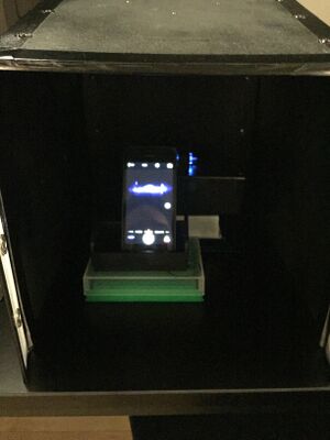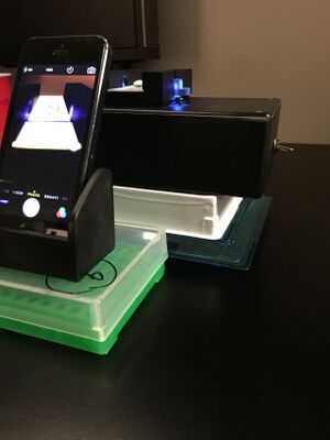 Adjust the distance between the smartphone and the fluorimeter so that is is greater than 4cm away but not blurry. Record set distance.