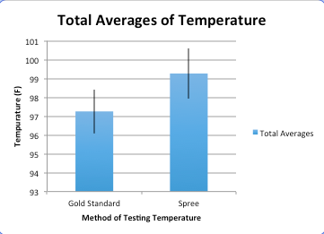 ResultsGraph of the Average Heart Rate http://openwetware.org/images/8/84/Average_Heart_Rate_BME_Lab_3.png Graph of the Average Temperature For both the heart rate and the temperature, we used the T-Test since there were only two groups (the Gold standard and spree). Pearson Value: -Heart Rate=0.71