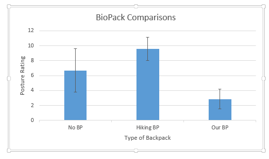 Inferential StatisticsPost-hoc Tests No BP vs. Hiking BP, t-test value:0.000368085, New p-value 0.0167, Significant? Yes No BP vs. Our BP, t-test value:4.0565E-06, New p-value 0.0167, Significant? Yes Hiking BP vs. Our BP, t-test value:2.48449E-17, New p-value 0.0167, Significant? Yes