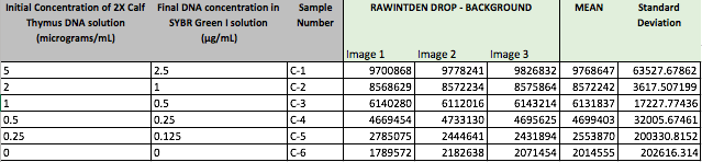 Repeat steps 1-5 with all varying concentrations of CALF THYMUS, keeping SYBR Green as a constant. Take 3 photos of each mixed concentration.