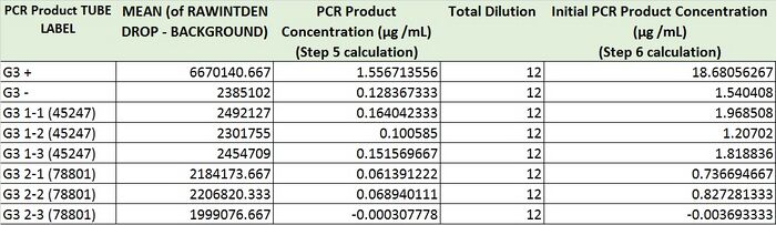 Prepared samples for patient 45247 and patient 78801 with positive and negative controls. Each tube with positive, negative, 45247 or 78801 was mixed with DNA/Primer mix. Each type of sample was contained 50 microliter of control or patient replicate DNA combined with DNA/Primer mix resulting in 100microliters of total fluid.