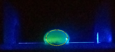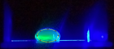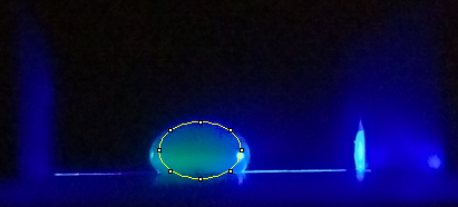 The phone, with camera included, was placed in the phone cradle in front of the fluorimeter.  Once the drop was set on the slide, the camera was shifted to a closer distance while retaining the focus on the drop.