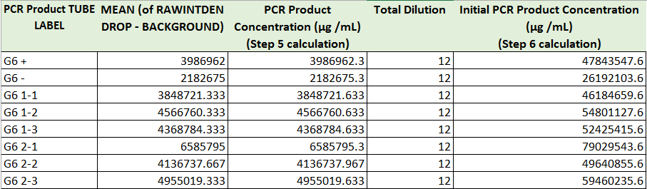 PCR Results: PCR concentrations solved