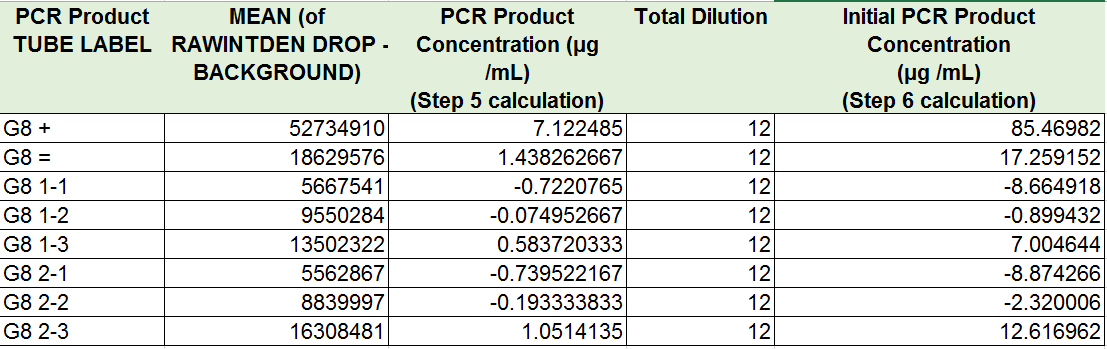 PCR Results: PCR concentrations solved