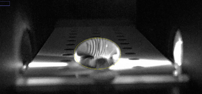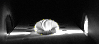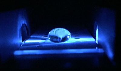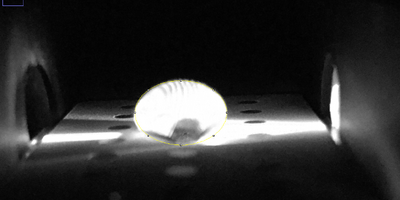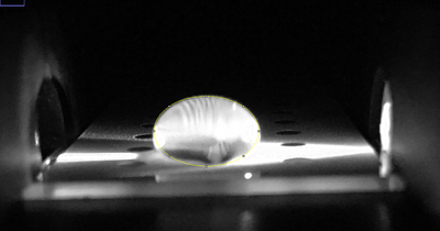 Turn on the light of the fluorimeter and adjust the light so that it is focused through the other side of the drop