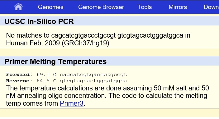 The UCSC In-Silco PCR website was used to test the DNA disease strand, the result was (NO MATCHES) that indicate that this DNA strand has no match in the normal human genome confirming that it is a mutation in the human genome. The Feb 2009 data base was specifically used to get no matching result that could lead to the fact that this mutation was discovered recently.