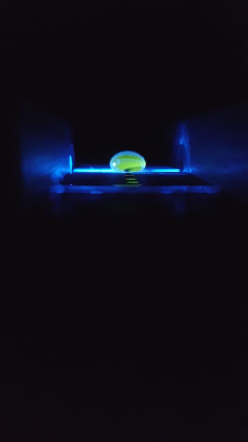 LAB 5 WRITE-UPPCR Reaction ReportTo set up the the reaction precise measurements of solutions had to be taken using a pipette. One member of the team did the work with the pipette while the other members observed and made sure the correct process was being followed, with the correct measurements. The pre-lab readings helped the team to understand the correct process of pipetting and how important it is to be patient and precise while using a pipette. The first stop on the pipette was used for when a sample liquid was being drawn from a sample tube into the pipette tip. The second stop on the pipette was used for when the sample liquid was released from the tip. To create the solution to be put in the PCR machine, exactly 50 microliters of PCR reaction mix was put in an empty PCR reaction tube then 50 microliters of DNA/primer mix was added, to create a combined solution of 100 microliters. There was extra liquid left in all of the DNA/Primer sample tubes, but there was no remaining PCR reaction mix leftover. For all patient and control samples of DNA and PCR reaction mix, there was not any visible amount liquid left in the sample tubes after being added to separate Buffer tubes. There was 100 microliters of PCR/DNA raction mix in each patient sample and control sample tube. The volume on the pipette was set to 120 microliters to ensure that all of the contents in those tubes were fully removed. Each sample was then added to its corresponding, pre-labeled Buffer tube. The same labeling schemed that was used for the PCR/DNA reaction mix samples was used for labeling the Buffer tubes. Because the Buffer tubes were already distinguished by having a red dot, there was no need to create a different labeling scheme. Fluorimeter ProcedureSmart Phone Camera Settings