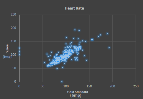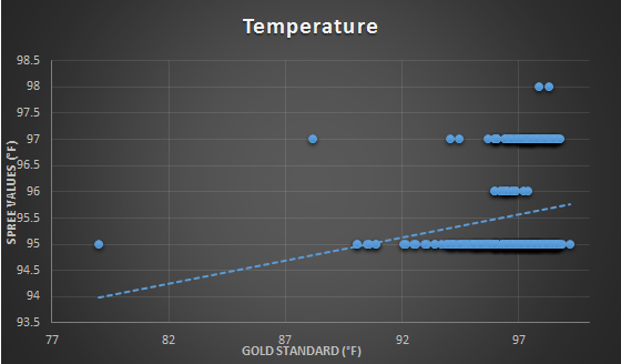 Design Flaws and RecommendationsWe are evaluating the Spree headband’ claims of accurate heart rate and body temperature measurements. We are using a pulse oximeter and an internal thermometer as the ‘gold standard’ in this comparisons. A gold standard allows us to compare how by what magnitude does the Spree headband’s measurements differ. For the heartrate, the averages were about the same and the scatterplots trend line was similar as well, albeit there was some discrepancy within the plots. The heartrate is fairly accurate on the Spree but not up to the Gold Standard. On the other hand, the temperature measurement seems to be off by a larger margin with constant spree temperature, not matching up with the actual temperature. This means that even though the thermometer is reading different temperature, the spree is only reading one, despite the changes. This indicates a shortcoming in terms of the Spree’s temperature measuring capabilities. Sources of error in the Spree headband could be due to improper placement of the headband, so human error or the location or capabilities of the sensor being diminished due to the increased physical and its production of movement and sweat.