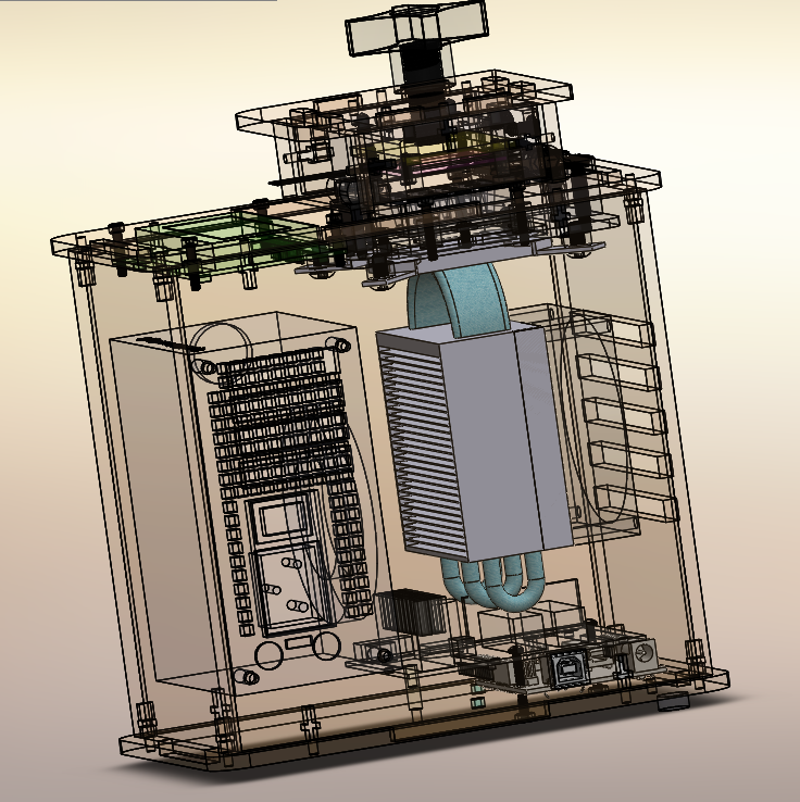Feature 2: Hardware - PCR Machine & FluorimeterIn order to better transition the temperature changes in the PCR machine, we've decided to add two new components to the existing concept. First, in order to significantly decrease the amount of time the reaction cools down inbetween cycles, we've integrated a water cooling system to the component where the reaction takes place. Water cooling is a technique used to regulate temperature in machines, particularly computers. Water cooling will also compliment the heat sink and fan by removing heat from the system. Furthermore, we've implemented insulation barriers around the thermocycler. Insulators help trap heat in the thermocyclers, ensuring that heat doesnt escape from the system, and that reactions stay closer to the temperature they need to be at.