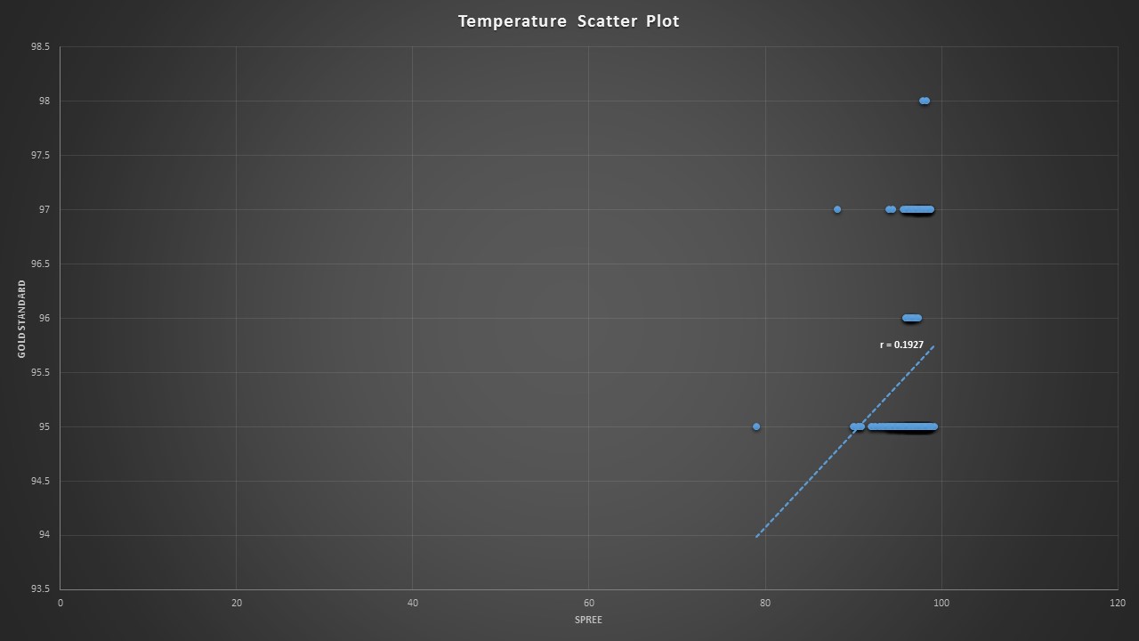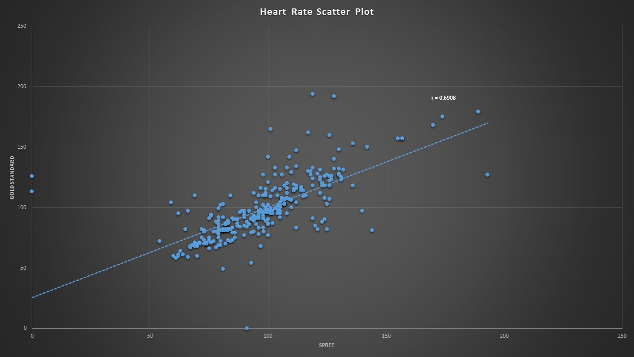 OUR TEAMLAB 3 WRITE-UPDescriptive Stats and GraphTemperature: Averages: - Gold Standard: 96.647 (°F) - Spree Headband: 95.531 (°F) Standard Deviations: - Gold standard: 1.923 - Spree Headband: 0.870 Count: - Gold Standard: 324 - Spree Headband: 324 Standard Error: - Gold Standard:.107 - Spree Headband: .048 Two Tailed Paired T-Test: p-value: 1.09E-21 Pearson's Correlation Coefficient: r = 0.193 Heart Rate: Averages: - Gold Standard: 98.090 - Spree Headband: 98.954 Standard Deviations: - Gold standard: 23.0305 - Spree Headband: 24.8775 Count: - Gold Standard: 303 - Spree Headband: 303 Standard Error: - Gold Standard: 1.323 - Spree Headband: 1.429 Two Tailed Paired T-Test: p-value: .42712 Pearson's Correlation Coefficient: r = 0.691