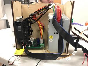 After speaking with Professor Haynes, she told the group to move forward with the idea, showing pictures of the device as a comparison to the original power supply. Our design includes a much smaller power source. The goal the group settled on was to reduce the size of the overall unit, while still allowing for the same number of simultaneous tests. As you can see from all of the above pictures, the new power supply is considerably smaller than the current option. It plugs into the board in the exact same spot (where all the colorful wires are coming out of the white plastic piece plugged into the board) and will quite literally be attached to the board, sticking up about two inches. Looking closely, the yellow tips of the new power supply will go where the white plastic and cords are sticking out of the board. The other cords attached to the new power supply plug into various places, such as the current fan and heat sink. However, a large part of the hot air that is introduced into the system comes from the power supply itself. By removing that, there may be further improvements possible with different fan and heat sink setups. For now, the goal of the group is to replace the giant gray power supply with this new very small design. As one can see, it is compatible with the devices and power supply requirements currently in use in the PCR machine, and it has a small wire that allows a power cord, similar to nearly any laptop power cord on the market, to plug in on an external wall of the device.