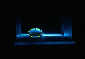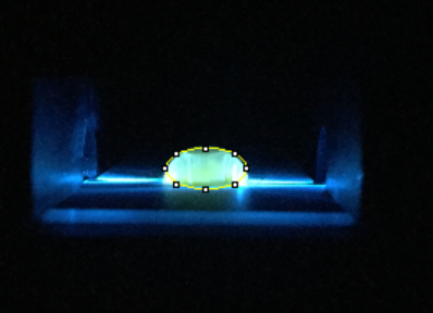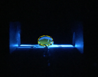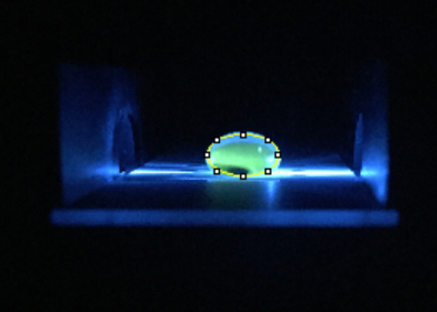 In order to set up the smart phone camera to accurately take a picture of the drop sideways, we vertically inserted the smart phone in a cradle. To stabilize the phone, we placed a plastic box underneath the cradle. To adjust the height of the fluorimeter, we also placed a plastic box under it. Then, we measured the distance between the smart phone cradle and the drop.