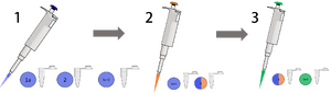 Our kit will rely on color coordinated steps and consumables that are pre-measured, or, fixed to a certain measurement. The steps in which the consumables are used are assigned a number and the procedure proceeds in number order (ex - 1, 2, 3, 4, 5...) An explanation of the steps in the image above labeled 1, 2, and 3 follows.