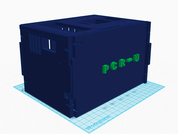 Our team used Tinkercad to construct our product. The pre-made files for the components of the box were used to make our new product. Tinkercad was much easier to use than SolidWorks has been previously. We assembled the different parts together and changed the color of the pieces. In addition to the pre-made files, we added our logo (PCR-U) to the front of the box.