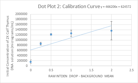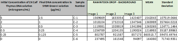 The fluorimeter was rested on top of a stack of plates so the camera and the fluorimeter glass were about equal heights. The stack of plates were between 35 and 45. The slide was inserted into the fluorimeter with the smooth side down and at a position where the blue light hit between the first two drops. The iPhone 6 was placed inside the phone cradle approximately 4cm away from the location of the drop. The drop would be placed in the middle column and between the first two rows of the glass slide. The light box was placed around the fluorimeter with one flap up to allow the photo to be taken. The camera was set on a 10 second timer so there was time to close the flap without disrupting the camera's focus.