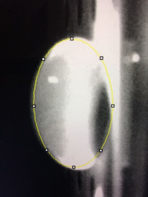 Patient 63747: The drop appeared to be very green. In the split channel image, the drop appeared very bright. The initial concentration was in the 50-60μg/mL range.
