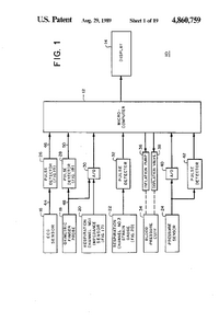 This device is a vital signs monitor which uses several sensors, including a finger probe and blood pressure cuff system, to monitor a user. The information gathered by the sensors are then sent to a microcomputer which analyzes it and shows the result on the display. A unique feature is the warning messages that are displayed on the watch-like monitor if vital signs are atypical. |
