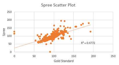 Inferential StatsTemperature (Spree vs. Gold Standard): p-value (paired t-test): 1.09676 E^(-21) This p-value is less than 0.05, which shows that there is a statistical difference between the two means between the temperature readings of the Spree Band and the Gold Standard (oral thermometer). This means that the Spree Band's temperature sensor is not effective and accurate in its measurements of an individual's temperature, as the p-value signifies that there is a statistical difference between the two means of the Spree Band readings and the Gold Standard readings, and the temperature readings between the Spree Band are not very close to the actual readings of the Gold Standard. Pearson's R Correlation Coefficient: 0.192798089 ANOVA p-value (disregard since not a 3 or more test): 1.85543 E^(-20)