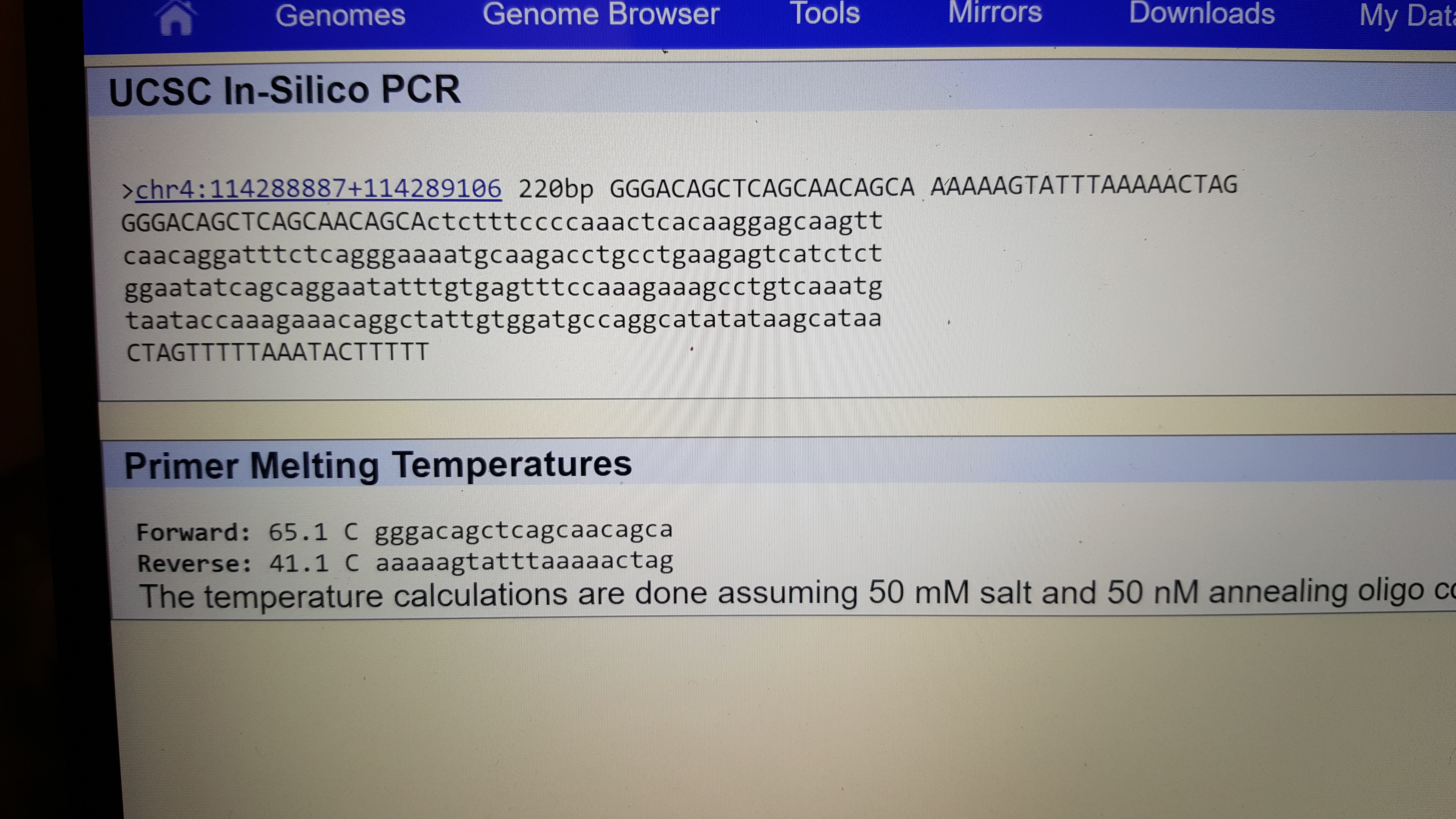 Primer Design and Testing The results of the primer test revealed that the non disease primers indicated a 220bp sequence on the 4 chromosome.