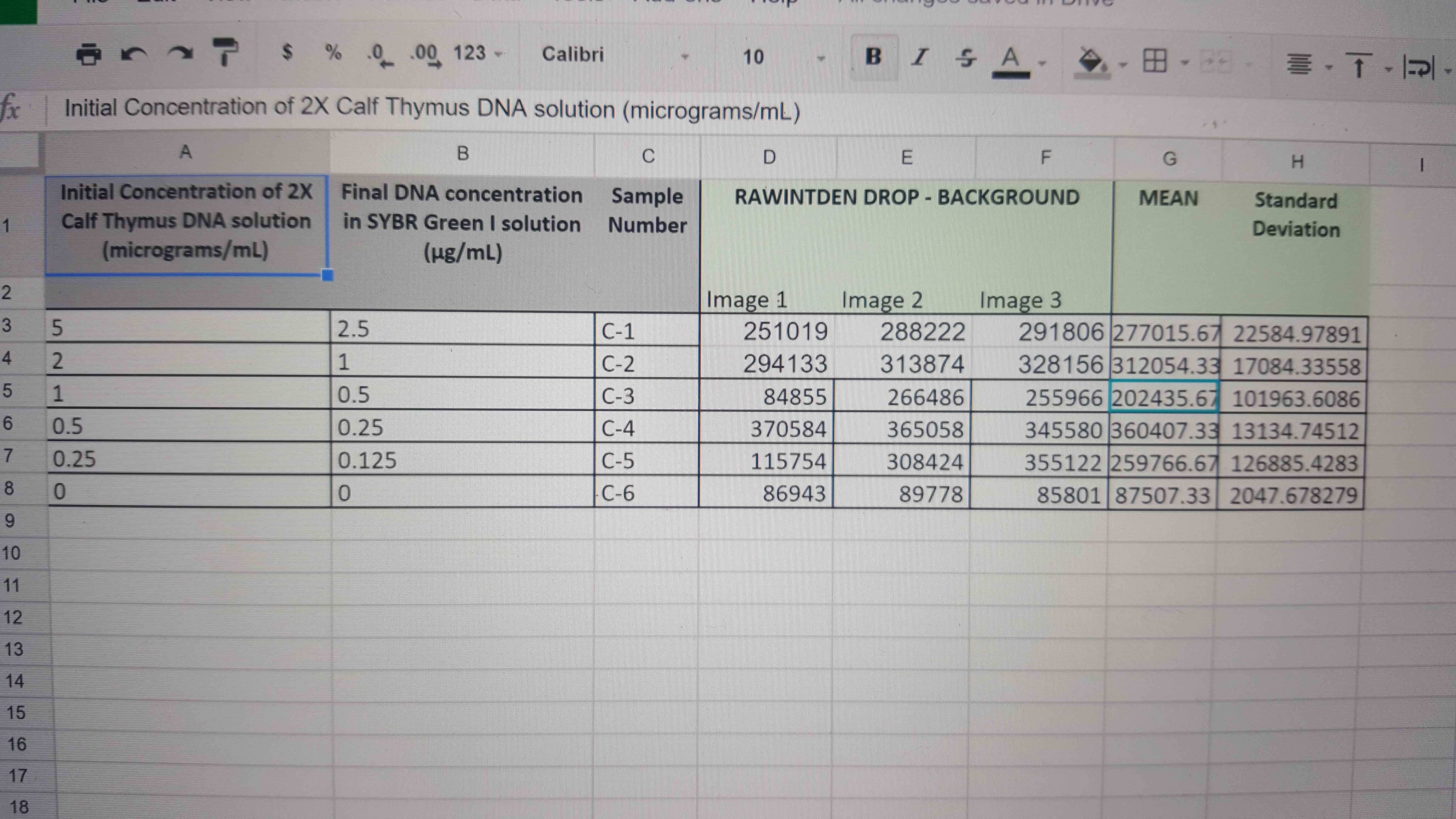 PCR Results: PCR concentrations solved