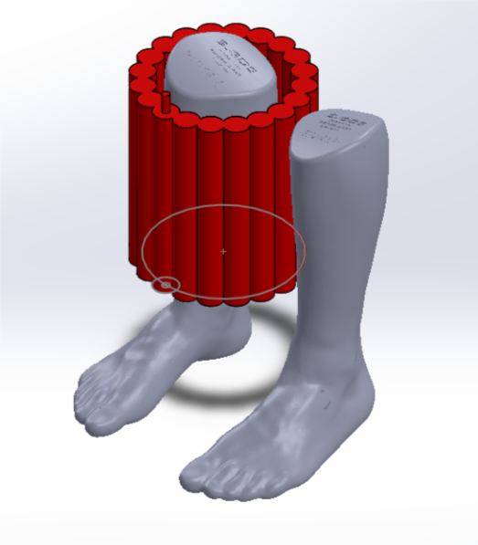 Inflatable splint mark 2:   Our device will be inflatable, made of a vinyl substance. When deflated, the product will be able to fold into a compact, portable size that can be easily transported. Each of the individual air pockets will inflate, creating a strong cast-like pressure on the fractured bone. The device will be able to inflate to different amounts in order to accommodate varying bones and sizes.