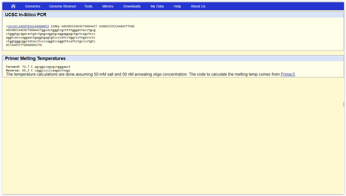 SNP Information & Primer DesignBackground: About the Disease SNP The human genome is made of many long strings of code composed of nucleotides in a specific order, that instruct the cell which proteins to produce. Single nucleotide polymorphisms, or SNPs (which are pronounces like the word "snips"), are a result of an accidental alteration in a single component or nucleotide in the DNA, which can lead to a variation in the proteins produced by the cell. When a piece of DNA is altered in such a way that it causes a change in the proteins produced, that leads to a change in the function of the cell, as proteins are the mechanisms through which the cell works. So when a SNP produces this type of change, it can lead to disease in the cell, and potentially fatal problems in the organism. Due to the fact that these morphisms in DNA can lead to such drastic outcomes in the organism, it is very useful for medical professionals to be able to identify the location of a SNP, so that they have a better understanding of how to approach removal of the disease SNP. Primer Design and Testing (Question 15 on worksheet) In the primer design, we seek to find the forward and reverse primer and read them from 5’ to 3’. We want to find the base pair in the genome that contains the error. This base pair and the 19 base pairs before it form the the forward primer that has a total of 20 base pairs. In this case, the primer started at 44907853 and it was 5’- AGCGGCCAGCGCTGGGAACC. The reverse primer is 200 base pairs prior to the base pair that had the mutation and it serves as a reference point during PCR. Thus, we can find the primer position to be 44908053 by adding 200 from the base pair position of the forward prime and the reverse primer to be 5’- CAGGCCCCCCAAGACTTAGC. We test these primers by inputting them into the genome site and we found the healthy 220-base pair long primer. The results can be found below. When the disease mutation was inputted, we didn’t find the primers since you wouldn’t expect to find it in a healthy human’s genome. | ||||||||||||||||||||||||||||