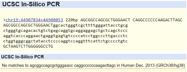 Primer Design and Testing A test was conducted to observe the impact on the DNA transcription and protein translation when one codon is changed by one nucleotide. The codon that was manipulated was on the 19th chromosome in the numerical position of 44907853. The change of the nucleotide resulted in an allele producing the protein called Apolipoprotein E. The first screen capture shows a search for the gene in its non-manipulated form and shows that it does exist in the human genome. The second screen capture shows the manipulated form and no matches were found just as can be expected. The web page used only has the non-manipulated genes in its system which is why the SNP could not be found.