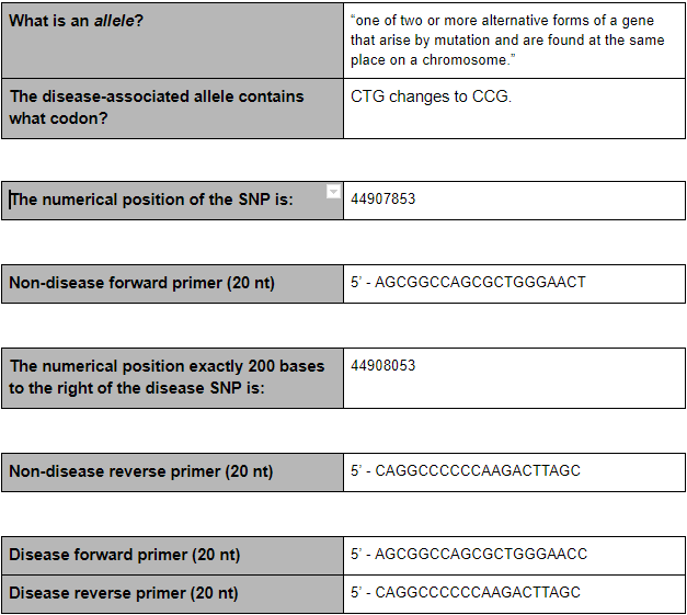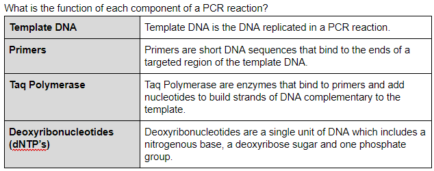 - DNA/ primer mix, 8 tubes, 50 μL each: Each mix contains a different template DNA. All tubes have the same forward primer and reverse primer