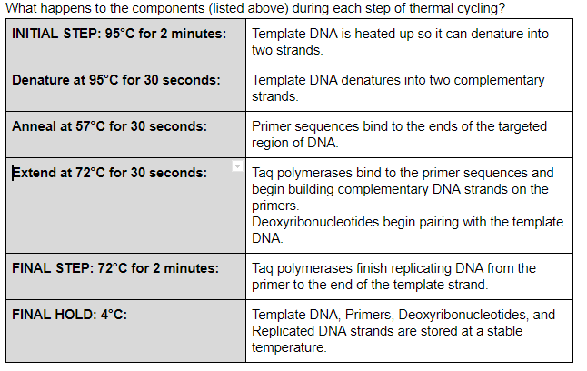 - Run each tube through the thermocycler, using the values listed below in the "OpenPCR Program" section