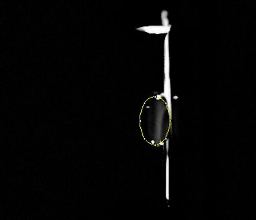 A 80μL drop of SYBR GREEN 1 is placed in the middle of the first two rows of the slide using a pipettor. This is then followed by a 80μL drop of the calf thymus. Both the calf thymus and the SYBR GREEN 1 drops should be pinned in the same way as the water drop. The drop is aligned by moving the slide so that the blue LED light is focused by the drop to the middle of the black fiber optic cable fitting on the other side of the drop. The camera should then be set up on a timer so it may take photos after a light box is placed over the cradle and fluorimeter so that no stray light floods the image. The box was lifted after each photo to make sure the photo is clear, with the main goal being to take 3 clear photos. The pipettor was used to move the 160μL drop of water from the surface, and the slides were moved to the next position. The preceding steps were followed for each different concentration of calf thymus used in the lab.