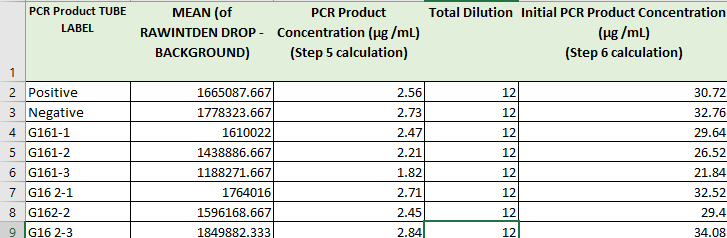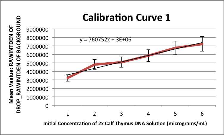 Initial Concentration of 2X Calf Thymus DNA solution (micrograms/mL)