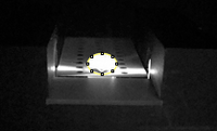 If needed, move the slide so that the drop is illuminated by the fluorimeter light at its center.