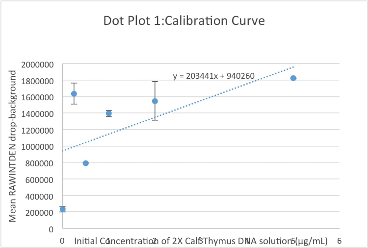 Data Collection and AnalysisImages of High, Low, and Zero Calf Thymus DNA 5 μg/mL sample 0.5 μg/mL sample zero DNA Calibrator Mean Values