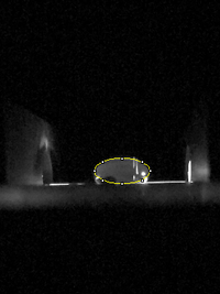To properly calibrate the iPhone that was used to capture the images of the solutions, a 160 microliter drop of water was used as a point of reference. This drop was placed on the rough side of the slide which was then inserted onto the fluorimeter and the iPhone was placed on a stand. The fluorimeter was elevated by three plastic trays so that it was held level with the camera. Once this was all set up, it was determined that the correct distance between the iPhone and the fluorimeter for a focused photo was 8cm.