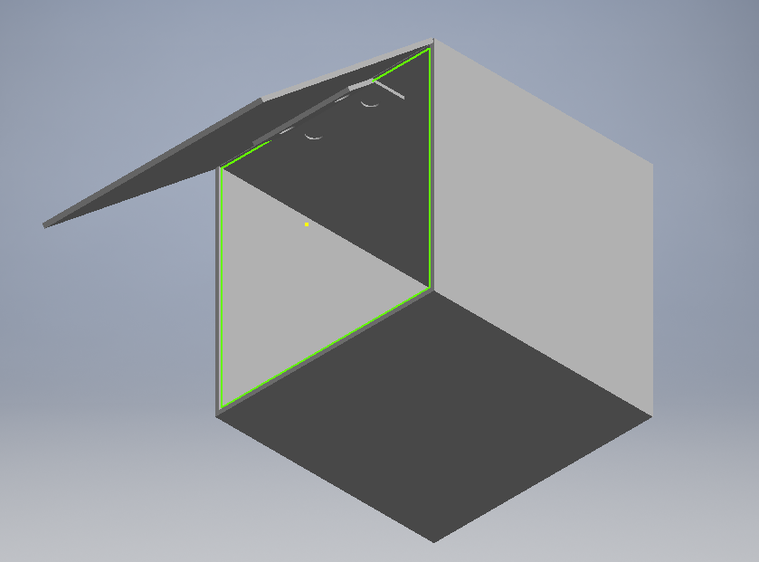 Design using Autodesk Inventor of new box with hinged side.Design using Autodesk Inventor of new pipette box that on top will contain pipette tips to the right side, and the PCR solutions labeled and ready to be used. Below the pipette tips, there will be a slot for the glass slides used for the PCR drop analysis.