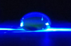 The fluorimeter was turned on and the slide was placed in such a way that the beam of fluorescent light was directly between two of the printed circles. The camera was then placed 1.5 inches away on a phone stand. The phone was set to take 3 pictures in 5 second intervals. The distance allowed for the slide to be moved towards the phone without a change in distance, relative to the phone and drop. The cover was then placed over the entire set up. The phone was focused on the drop in the darkness. The pictures were then set to be taken and the cover was completely closed. 17 seconds were allowed to pass before we removed the cover.