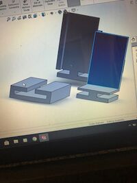 Our group decided to modify the spectrometer box. Our modification achieved two goals, creating a completely dark environment and an improved holding device for phones. For Figures 1.1-1.4, the image shows a completely inclosed box with a solid floor. There is an opening in the front with a specially fitted panel which allows the panel to quickly be slid down to ensure a dark environment. There is an opening on the top with another corresponding panel which allows for easy access to the actual fluorometer. This allows the slide and dye-solution to be replaced without moving the actual device. This keeps distance constant and eliminates a source of error. Figures 2.1-2.2 show a device that is designed to hold any size or shape phone. The actual device is built into the floor of figure 1.4. Both sides are spring loaded which will allow the two towers to move along their track and provide even supporting pressure on either side. The towers are L-shaped to proved more stability for the phone as well as having a reference point to place the phone flat against. This holds distance constant and also ensure the phone is viewing the fluorimeter at a straight angle. We chose this design to fix some of our main sources of error so that other will not make the same mistakes. It is more sturdy and takes less set-up than the original open PCR design. It is different in the ways described above.