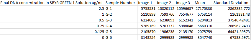 10. Repeat these steps for all of the different calf thymus concentrations and the patient DNA samples and positive and negative control. Make sure that in each "trial" the phone is directly the same distance it was calibrated to focus in.