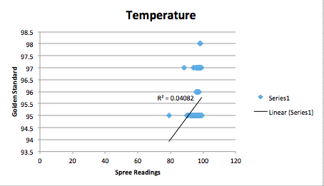 Standard Deviation for TemperatureGold Standard: 1.918463 Degrees Fahrenheit Spree Band: 0.870378 Degrees Fahrenheit