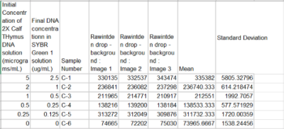 Our teams experience with pipetting the samples to set up the reaction was very easily understood. The pre-lab reading really helped understand the basic directions on what to do during the lab, but mainly the demonstration in class was the most helpful. We understood the difference between the first and second stop on the pipettor and that was very easily managed. The final reactions did have exactly the same amount of liquid of 160 micro-liters. If there was any liquid left in the pipette tubes it was a very small and insignificant amount of maybe a small droplet. We did have solution left in the tubes that had our DNA samples, but we did run completely out of SYBR Green I solution by the end. We did not change our labeling scheme from the previous lab.