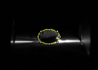 After setting up the drop on the fluorimeter, set up the phone so that it will take a picture of the droplet from the side. Bring the phone to the drop as close as possible to a point before the image turns blurry (the phone will be at least 4 cm away), and record the distance away for each trial.