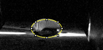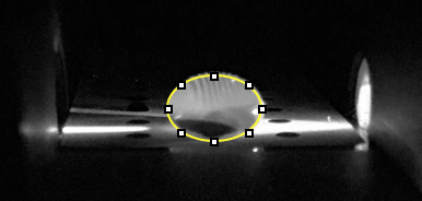 The slide was adjusted so the blue LED light from the fluorimeter focused by the middle of the drop.