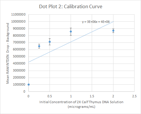 Initial Concentration of 2X Calf Thymus DNA solution (micrograms/mL)