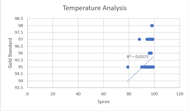 LAB 3 WRITE-UPDescriptive Stats and GraphTemperature -Mean Gold Standard:96.64716049 -Mean Spree:95.5308642 -Standard Deviation Gold Standard:1.922602071 -Standard Deviation Spree:0.870378299