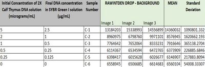 13. Repeat steps 7-12 for the other concentrations of calf thymus DNA.