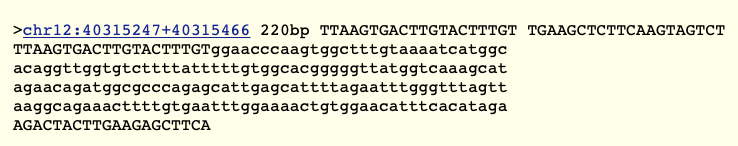 When inputting the non-disease forward primer 5’-TTAAGTGACTTGTACTTTGT-3’ and the non-disease reverse primer 5’-TGAAGCTCTTCAAGTAGTCT-3’ into the UCSC In-Silico PCR webpage, the correct 220bp sequence was obtained.