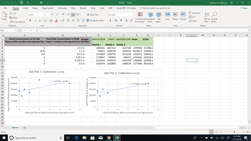 This experiment was fairly simple to complete. For this experiment, the prelab did prove itself to be useful. Having prior knowledge about the lab is essential in order to have a smooth running of the lab. The first and second stops on the pipettors are very easy to tell the difference between being that the first has more give after the initial pressure is given and after the second stop the button cannot go down any further. In the case of an unsteady hand, it was found helpful to use a finger from the idle hand and apply a small amount of pressure to the side of the pipette (close to the tip) to prevent further shaking. We made sure to dispose the tip after each transfer. This provided extra prevention of any possible contamination while also allowing us to become more familiar with the use of tips when handling a pipette. After transferring the samples, each tube appeared to have the same volume and every sample tube and PCR reaction tube was left nearly empty (there was some residual liquid but hardly enough to be significant). It can be assumed from these observations that we transferred the volumes correctly. Our labeling scheme did not have to be altered in any way after creating the first key. After closing the tubes and properly cleaning our lab area, we brought the PCR tubes to one of the TAs helping in the lab and she helped us find an open thermal cycling machine to use for our samples. This concluded our first PCR experience.