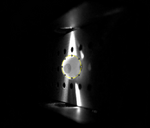 To obtain the images from the fluorimeter, we utilized an iPhone 8 Plus to take the photos. The phone was placed in a holder to maintain its position and the sensor was boosted by plates to set it up parallel to the phone camera. This meticulous positioning is what allows the camera to take an effective photo of the droplets to be properly analyzed. The flash on the camera was disabled and a timer was placed on as well to allow extra time to further darken the setting. The darkening is done in order to get rid of any outside light that could ultimately affect the SYBR Green I. To do this, a black box was utilized to be placed on top of the camera and sensor. When the droplets are on the sensor, the blue LED light is on, and the phone camera is placed, the photo is taken. While the photo timer is going, place the black box over the devices to get an ideal image to analyze.