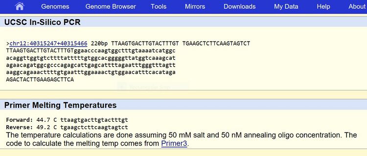 The non-diseased forward primer is 5'T-T-A-A-G-T-G-A-C-T-T-G-T-A-C-T-T-T-G-T 3' while the diseased forward primer is 5' T-T-A-A-G-T-G-A-C-T-T-G-T-A-C-T-T-T-G-A 3'. The numerical position is 40315466 after exactly 200 bases have been added. After this has been added, the non-diseased reverse primer is 5' T-G-A-A-G-C-T-C-T-T-C-A-A-G-T-A-G-T-C-T 3' while the diseased reverse primer is 5' T-G-A-A-G-C-T-C-T-T-C-A-A-G-T-A-G-T-C-T 3'.